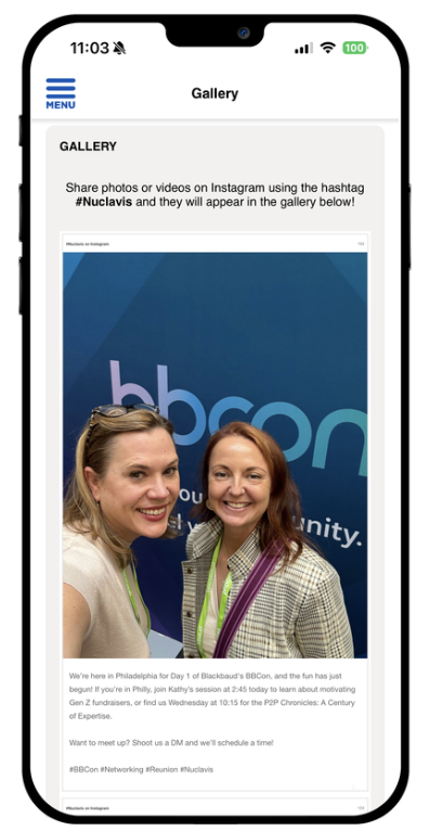2. Check the Gallery: Once posted with the appropriate hashtag, photos will be automatically aggregated into the app’s Gallery screen for everyone to see.